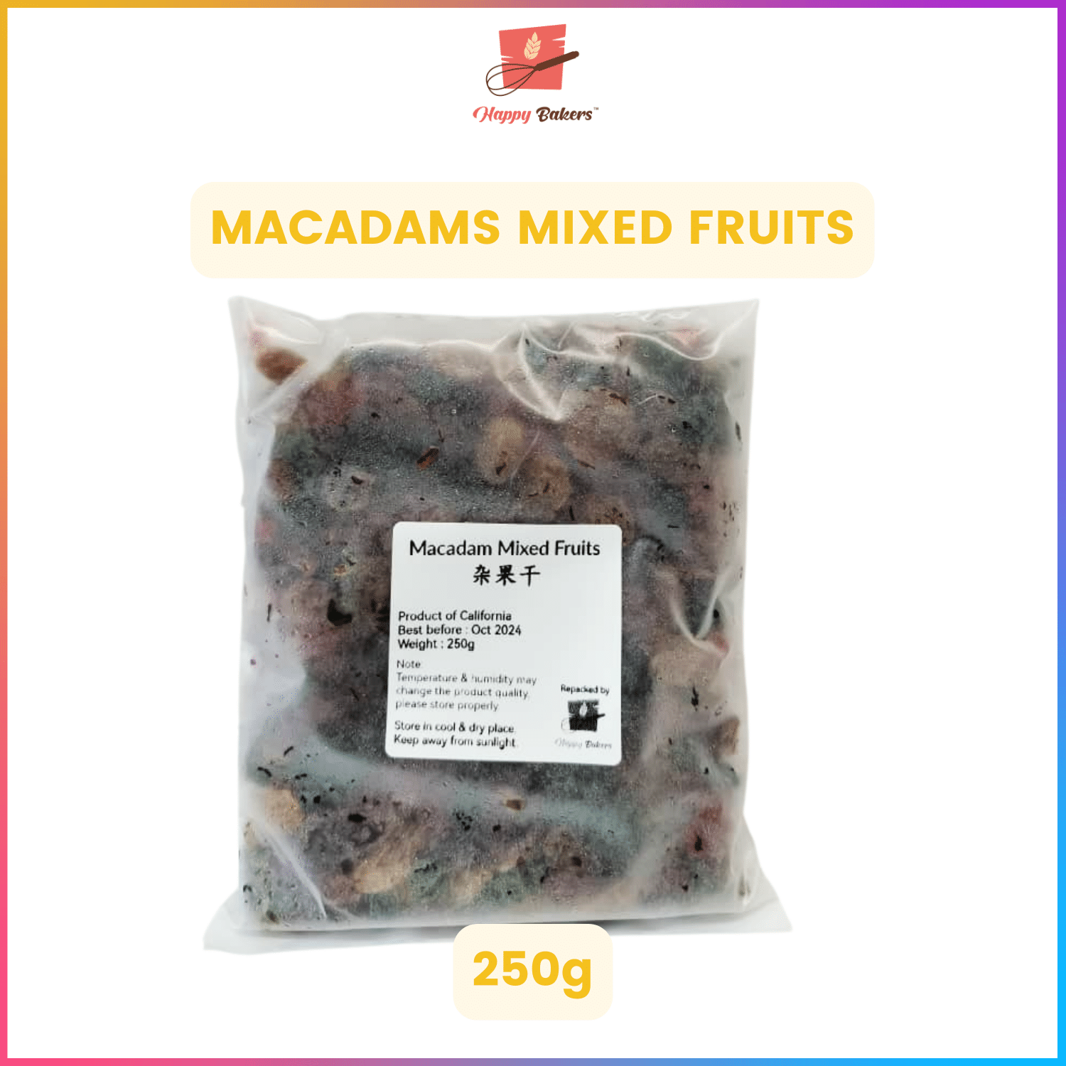 - Discover the exquisite blend of flavors with Macadams Mixed Fruits, a delightful assortment of the finest dried fruits. This mix brings together a variety of tastes and textures, making it a perfect snack for any time of the day. Each fruit is carefully selected and dried to preserve its natural sweetness and nutritional value, offering you a treat that's as healthy as it is delicious.