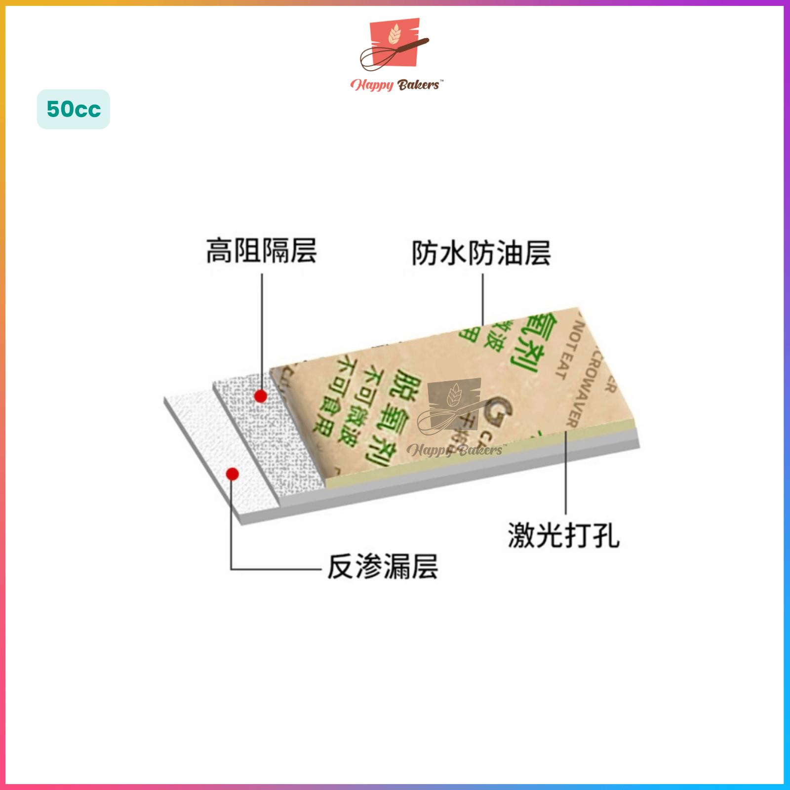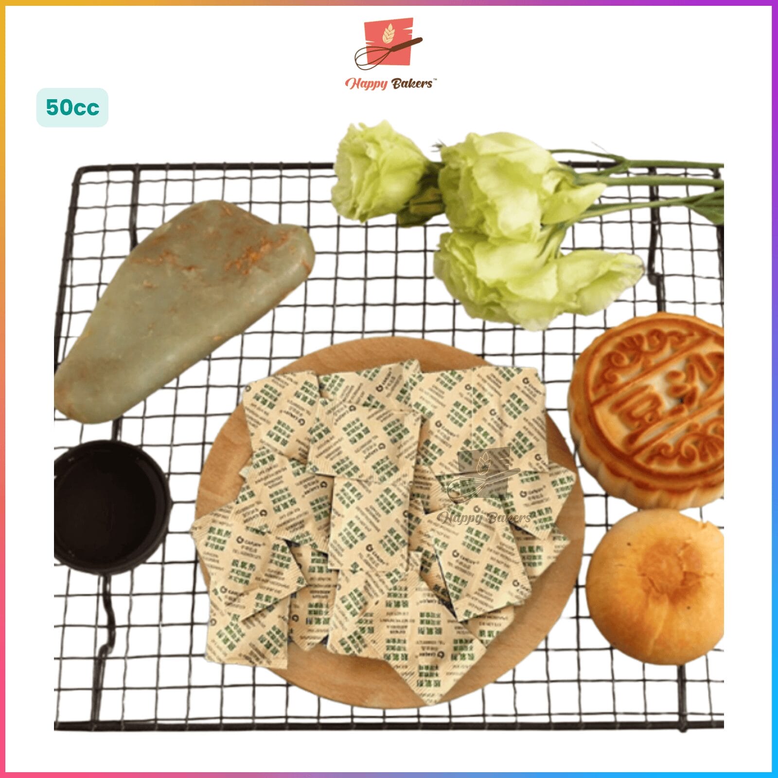 - Keep your food fresh for longer with our 50cc Oxygen Absorbers, perfect for mooncakes, pastries, cakes, cookies and more.